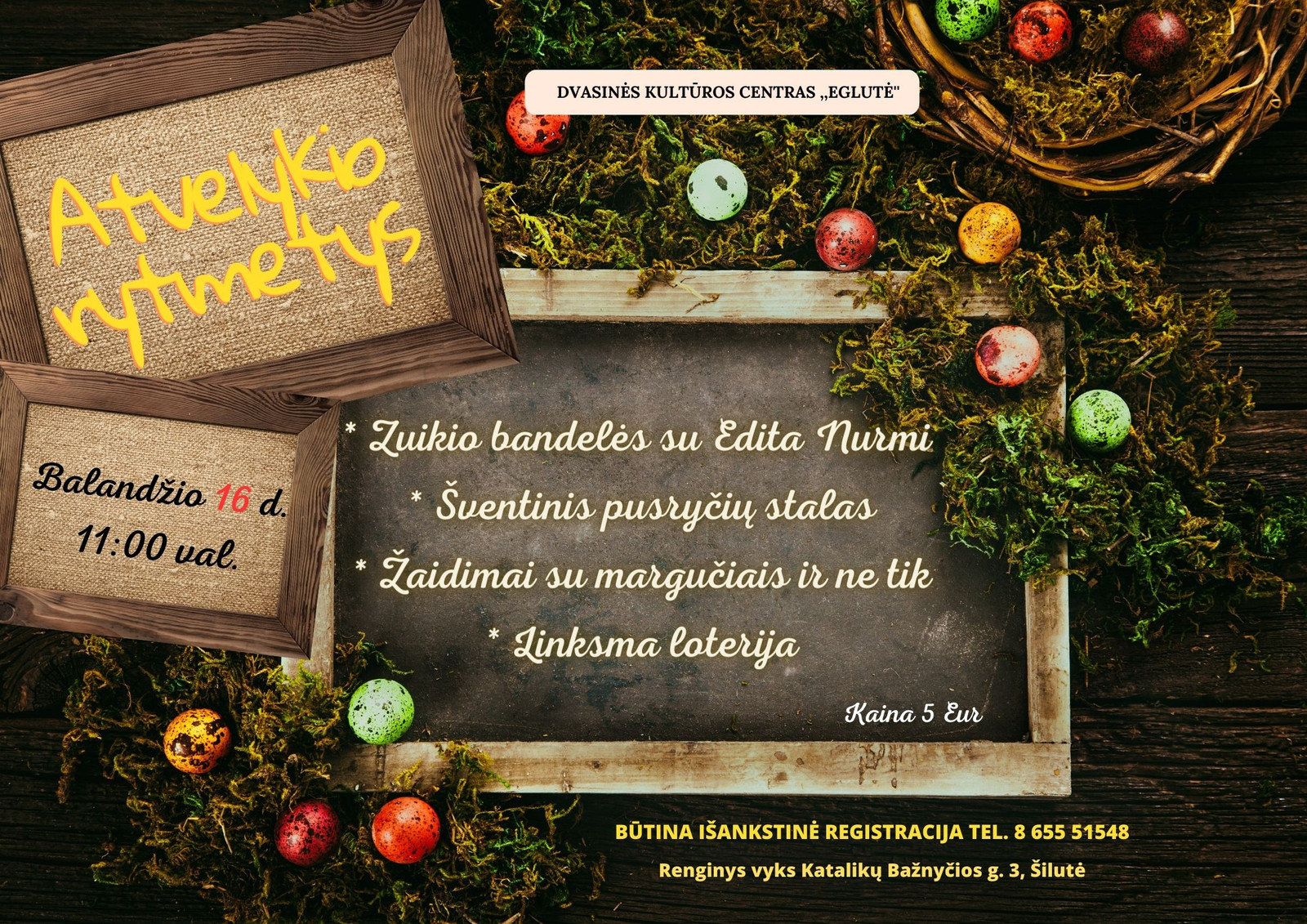 Balandžio 16 d. 11 val. dvasinės kultūros centras „Eglutė“ kviečia į Atvelykio rytmetį.