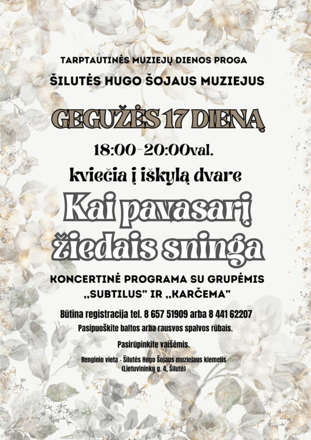 Šiemet Šilutė švęs 513-ąjį gimtadienį. Tad gegužės 25 d. nuo 12 val. kviečiame nepraeiti pro šalį ir užsuktį į Šilutės Hugo Šojaus muzi...