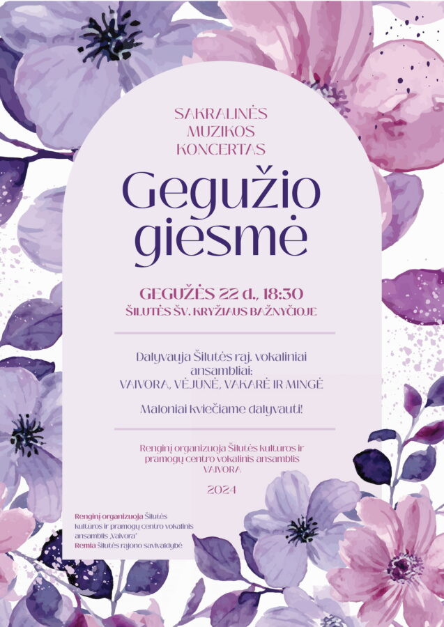 2024 m. gegužės 22 d. 18.30 val., kviečiame į sakralinės muzikos koncertą „Gegužio giesmė"! Lauksime Jūsų Šilutės Šv. Kryžiaus bažnyčio...