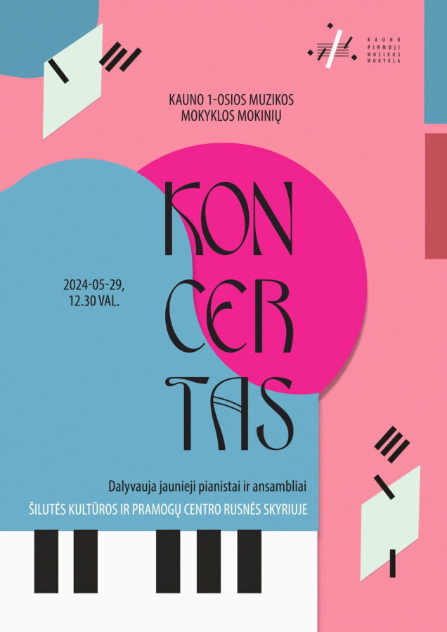 2024 m. gegužės 29 d. 12.30 val. Šilutės kultūros ir pramogų centro Rusnės skyriuje vyks Kauno 1-osios muzikos mokyklos mokinių koncert...