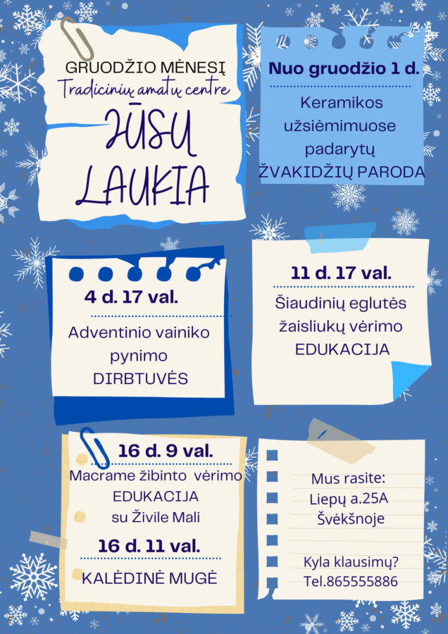 Tradicinių amatų centro Švėkšnoje gruodžio mėnesio renginiai