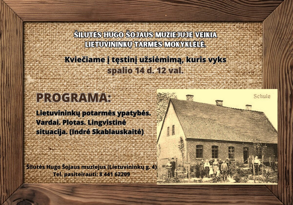 Spalio 14 d. 12 val. Šilutės Hugo Šojaus muziejuje vyks lietuvininkų tarmės mokyklėlės trečiasis užsiėmimas. Kviečiame dalyvauti!