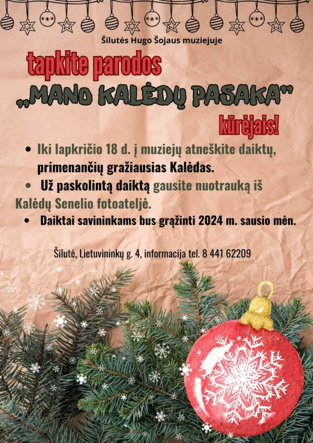 Iki lapkričio 18 d. atneškite į Šilutės Hugo Šojaus muziejų papuošimų, rūbų, indų ir kitų daiktų, Jums primenančių gražiausias Kalėdas....