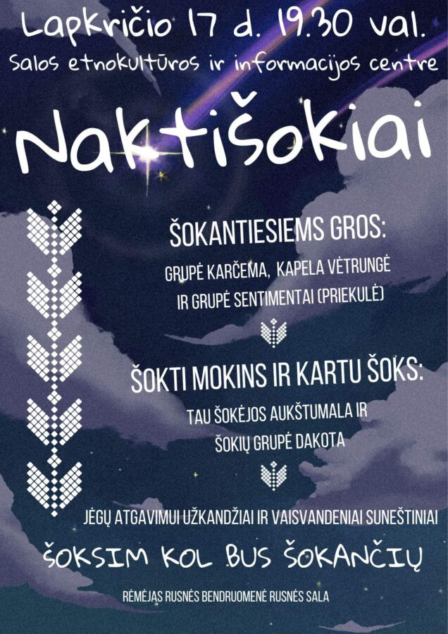 Salos etnokultūros ir informacijos centras lapkričio 17 d. 19.30 val. kviečia į naktišokius.