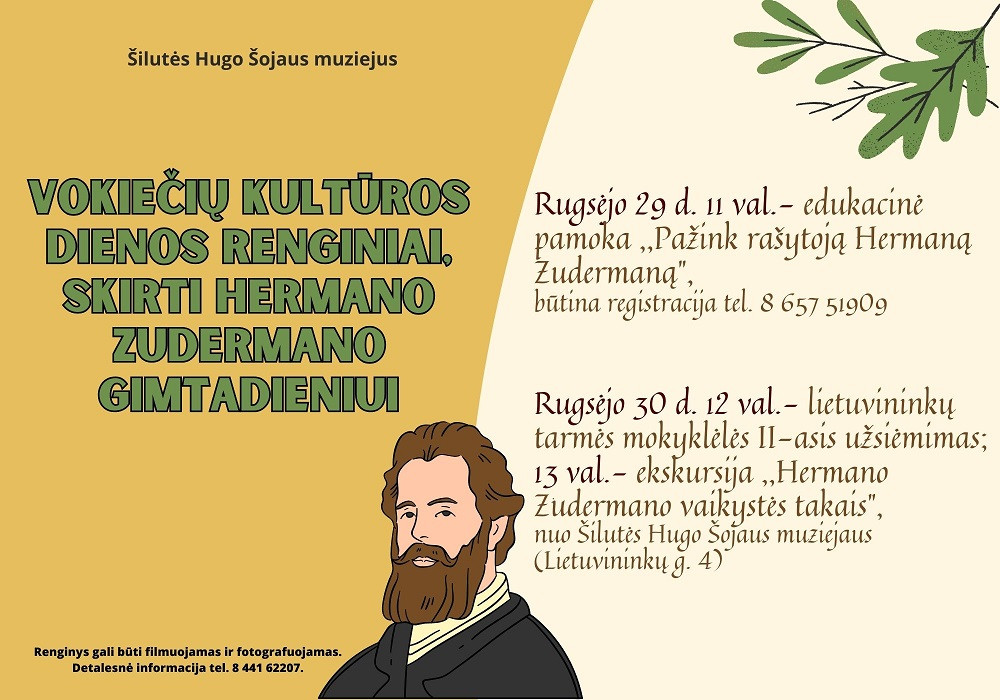 Rugsėjo 30 d. minėsime rašytojo, natūralizmo atstovo ir dramaturgo Hermano Zudermano (Hermann Sudermann) 166-ąsias gimimo metines ir vo...