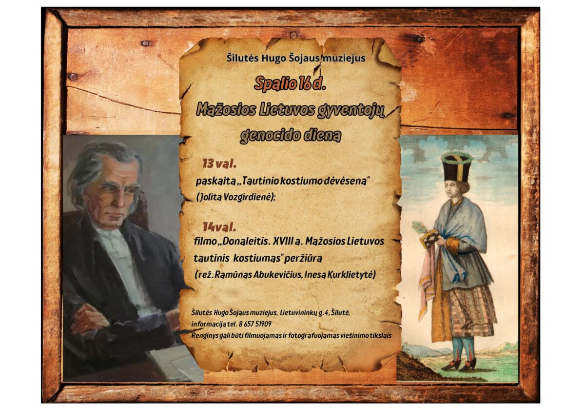 Spalio 16 d. Šilutės Hugo Šojaus muziejuje (Lietuvininkų g. 4, Šilutė) bus minima Mažosios Lietuvos gyventojų genocido diena.Filme ...