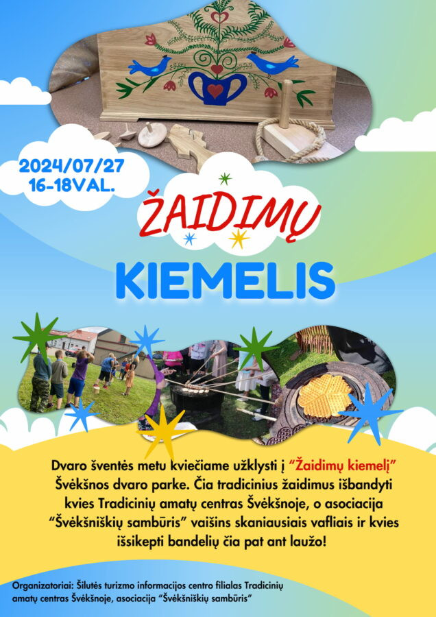 Visus didelius ir mažus, Švėkšnos dvaro šventės metu, kviečiame užsukti į žaidimų kiemelį, kur jūsų lauks įvairios atrakcijos ir nuosta...