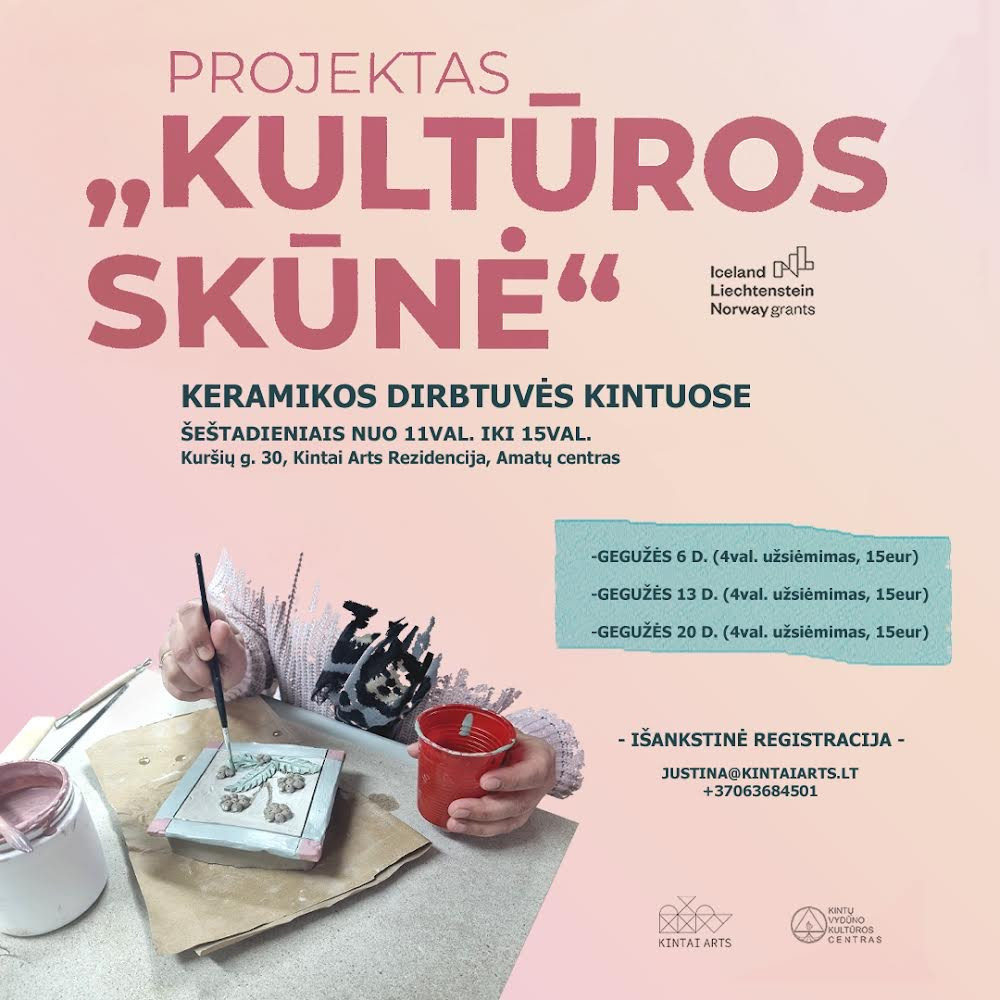 Kviečiame sudalyvauti paskutinėse šio sezono „Kultūros skūnės” keramikos dirbtuvėse Kintų meno rezidencijos amatų centre, kurios vyks gegužės 6, 13 ir 20 dienomis! Edukacijas veda keramikė-skulptorė Justina Vitkutė ! Informacija ir registracija adresu : justina@kintaiarts.lt