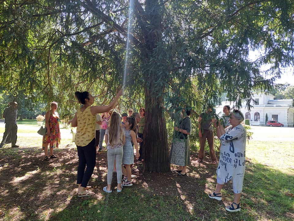 Edukacinio pasivaikščiojimo „Švėkšnos dvaro parko paslaptys“ metu kviečiame išsamiau susipažinti su Švėkšnos dvaro parku: su Švėkšnos dvaro istorija, čia gyvenusiais žmonėmis ir svarbiausiais parko elementais – medžiais. Pasivaikščiojimo parko alėjomis metu ne tik klausomasi pasakojimų, bet ir aktyviai dalyvaujama dvaro parko aplinkos pažinimo procese, pasitelkiant lytėjimą, uoslę, klausą bei regą. Praktinės užduoties metu ieškoma savo santykio su supančia aplinka, suprantama aplinkos ir žmogaus darnaus santykio svarba.