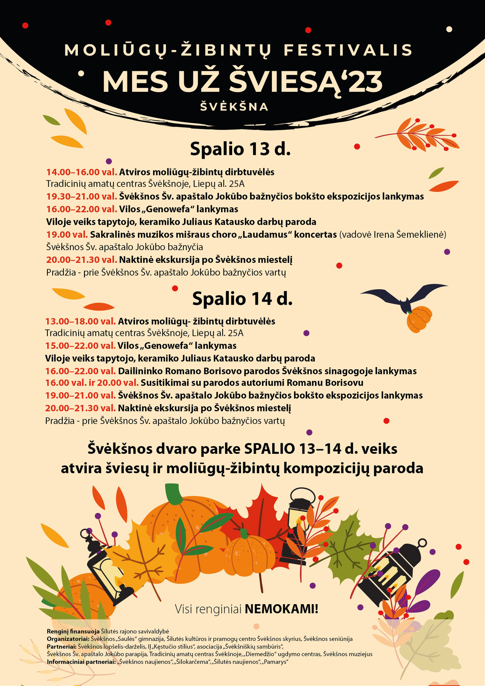 2023 m. spalio 13-14 dienomis Švėkšnoje vyks moliūgų-žibintų festivalis „Mes už šviesą“