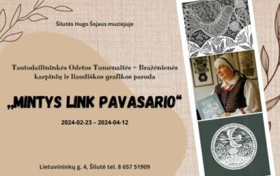 Vasario 23 d. Šilutės Hugo Šojaus muziejuje atidaroma tautodailininkės, meno kūrėjos, tradicinių amatų meistrės, „Aukso vainiko“ ir dviejų kultūros ministerijos