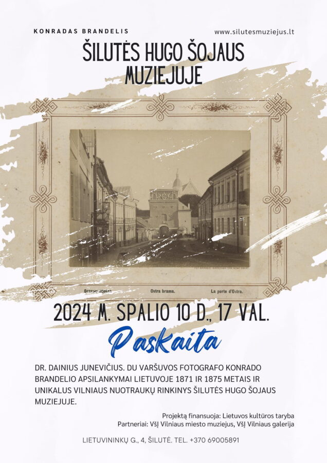 2024 m. spalio 10 d. 17 val. Šilutės Hugo Šojaus muziejuje vyks dr. Dainiaus Junevičiaus paskaita „Du Varšuvos fotografo Konrado Brande...