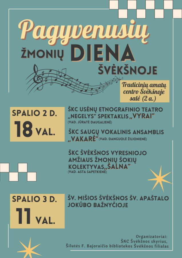 Spalio pirmosiosmis dienomis minėsime Tarptautinę pagyvenusių žmonių dieną. Kviečiame į renginius ir Švėkšnoje!