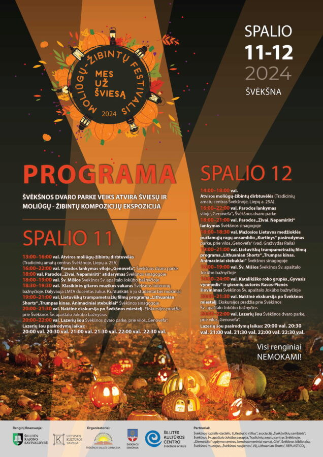 2024 m. spalio 11-12 dienomis Švėkšnoje vyks moliūgų-žibintų festivalis „Mes už šviesą 2024“PenktadienisSpalio 11 d.13:00–16:00...