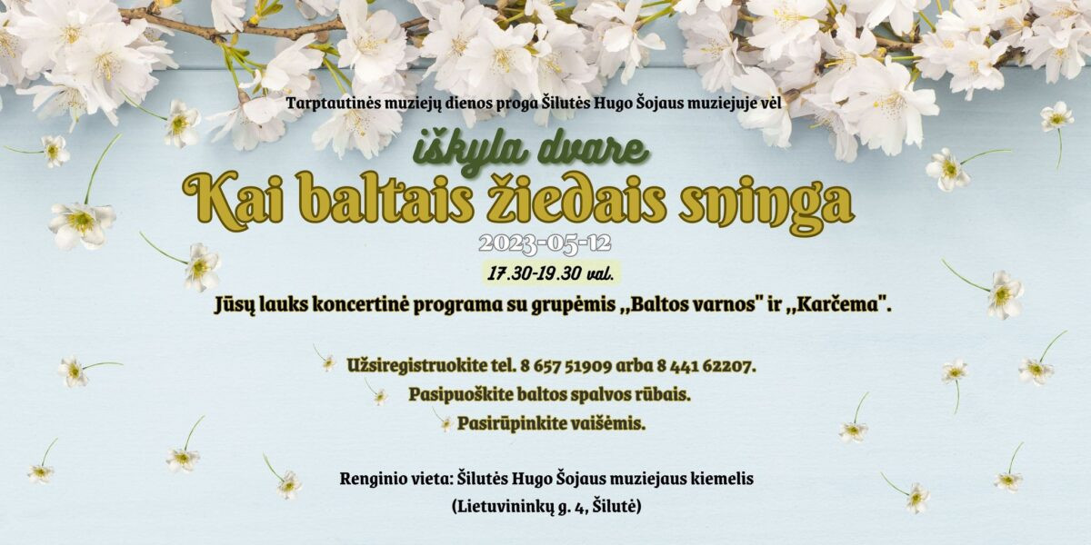Šilutės Hugo Šojaus muziejus tarptautinės muziejų dienos proga kviečia registruotis į iškylą dvare „Kai baltais žiedais sninga“. Gegužė...