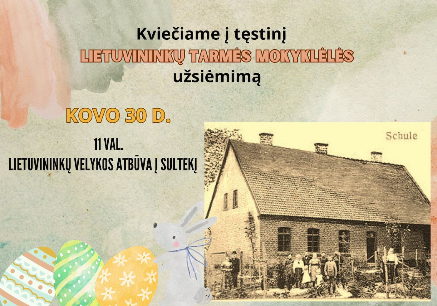 Artėjant šv. Velykoms, KOVO 30 DIENĄ, ŠEŠTADIENĮ, 11 VAL. Šilutės Hugo Šojaus muziejus kviečia Jus į tęstinį lietuvininkų tarmės mokyklėlės užsiėmimą „LIETUVININKŲ VELYKOS ATBŪVA Į SULTEKĮ“. Kalbėsime apie Velykų tradicijas ir papročius Mažojoje Lietuvoje.