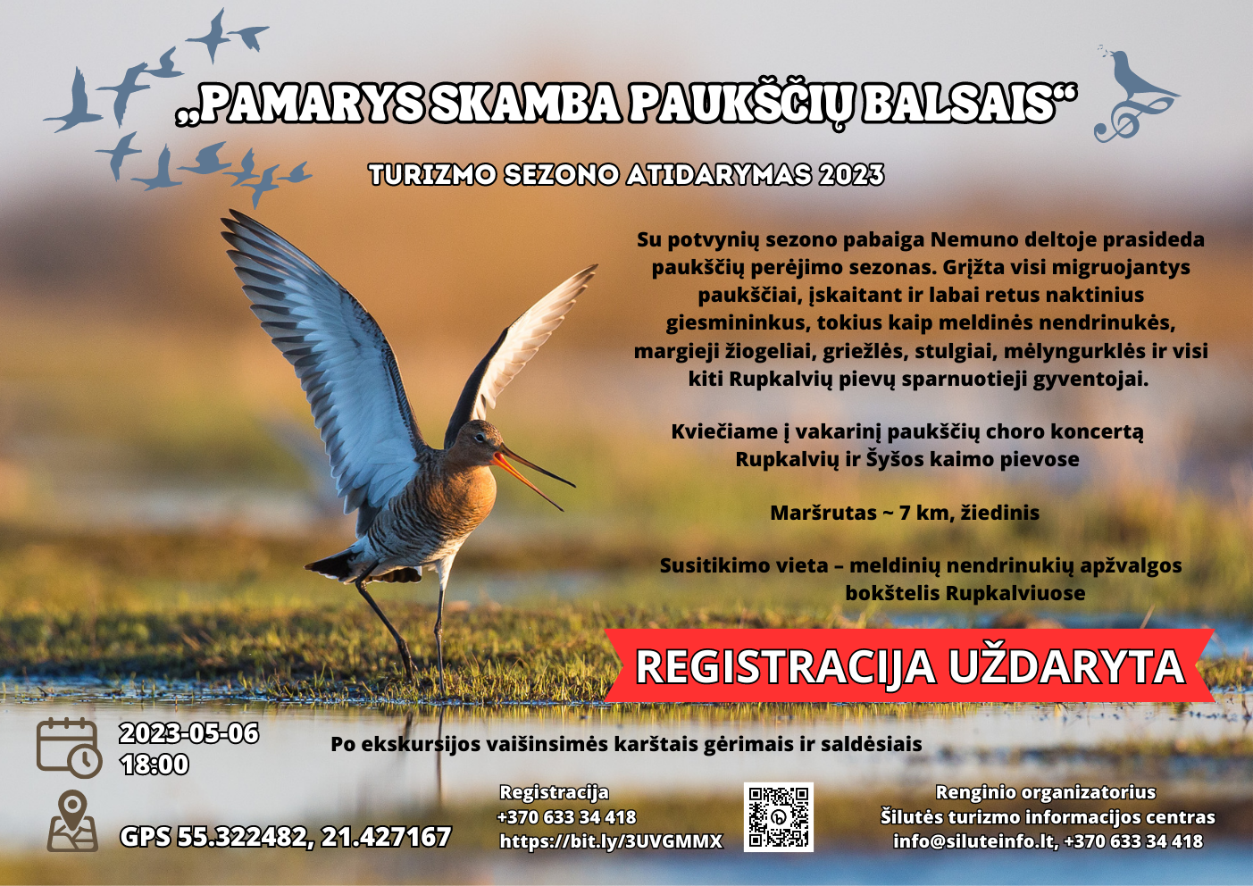 2023 m. gegužės 6 d. 18.00 val. kviečiame į vakarinį paukščių choro koncertą Rupkalvių ir Šyšos kaimo pievose.