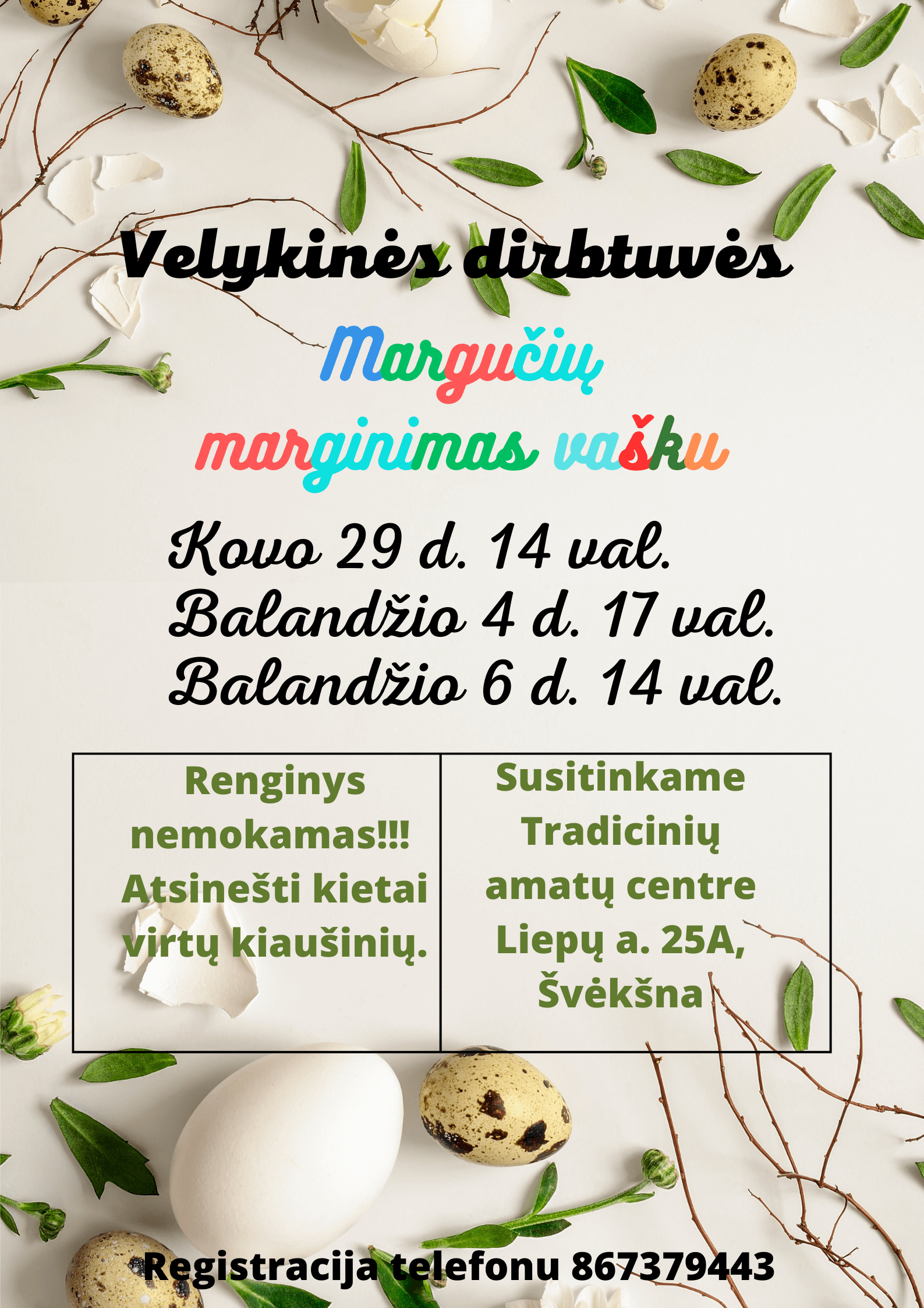 Tradicinių amatų centras Švėkšnoje kovo 29 d., balandžio 4 d. ir balandžio 6 d. kviečia į velykines dirbtuves.